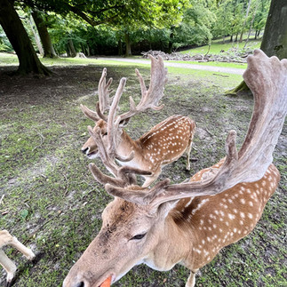 Then we walk up a hill, and there they were. I opened my carrot bag and lured them over within seconds, meanwhile shouting at Jonny to capture this glorious moment. Thank God I left the battery in the cup holder in the van... It was too fun to care in this moment. Within 30-seconds of the first deer arriving I felt like some vegetable-giving Opera, “You get a carrot, you get a carrot- ouch, not my finger- you get a carrot!"